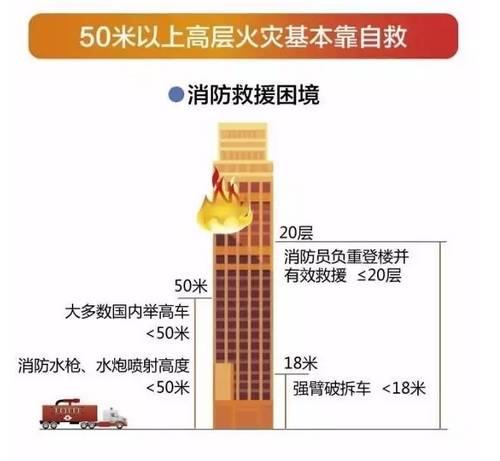 在超高層建筑火災事件中,消防云梯車救助高度有限,要想成功逃生,很多時候要靠自救。
